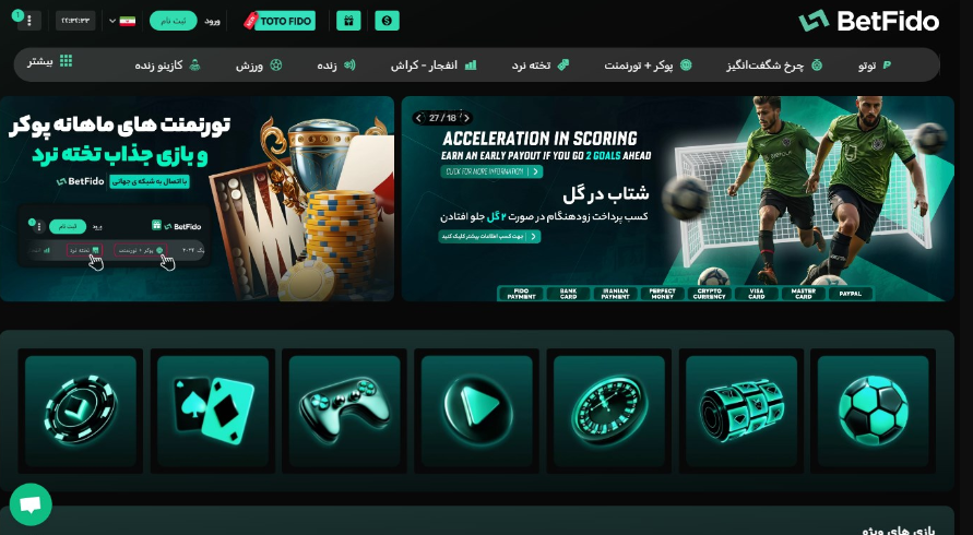 سایت و اپلیکیشن بت فیدو یکی از معتبرترین پلتفرم های شرط بندی آنلاین است که امکانات گسترده و متنوعی را در اختیار کاربران قرار می دهد. ثبت نام ساده و ورود سریع به محیط کاربری، کاربران را قادر می سازد بدون فوت وقت از تمام قابلیت ها استفاده کنند. این طراحی ساده و کاربردی باعث شده تازه وارد ها نیز بتوانند در کوتاه ترین زمان، با محیط برنامه آشنا شوند و بدون سردرگمی شرط بندی کنند.
